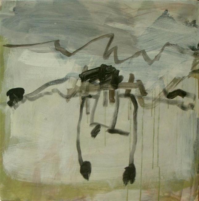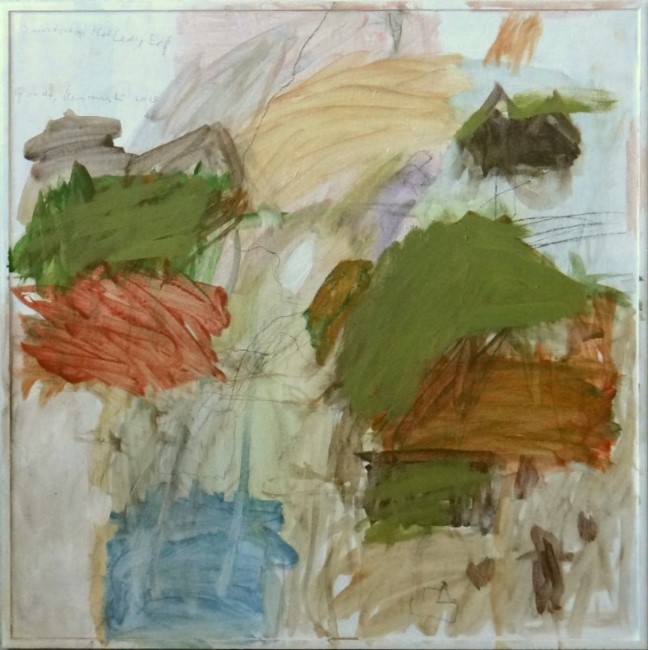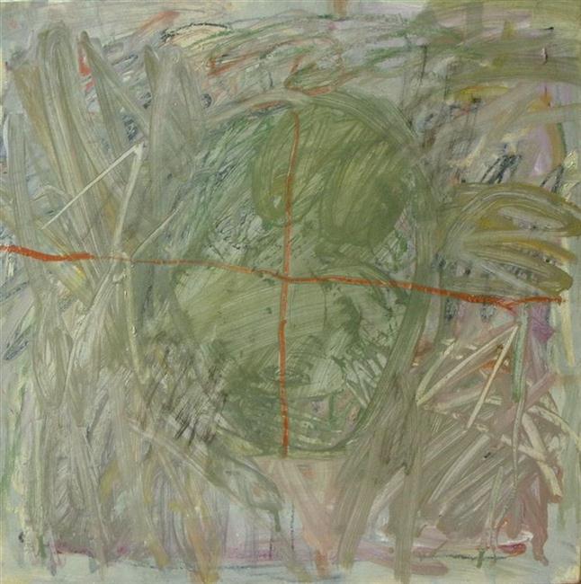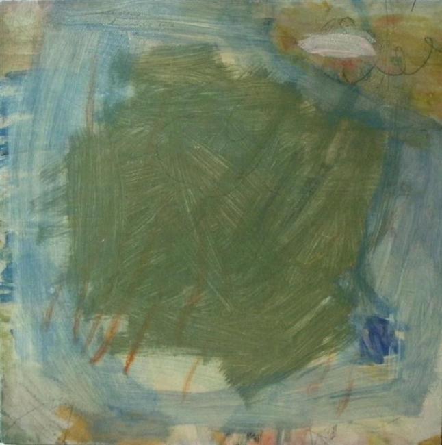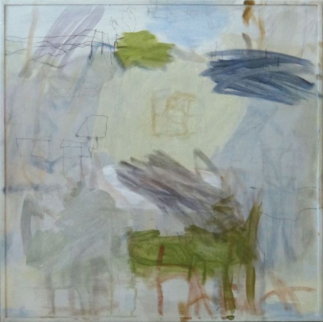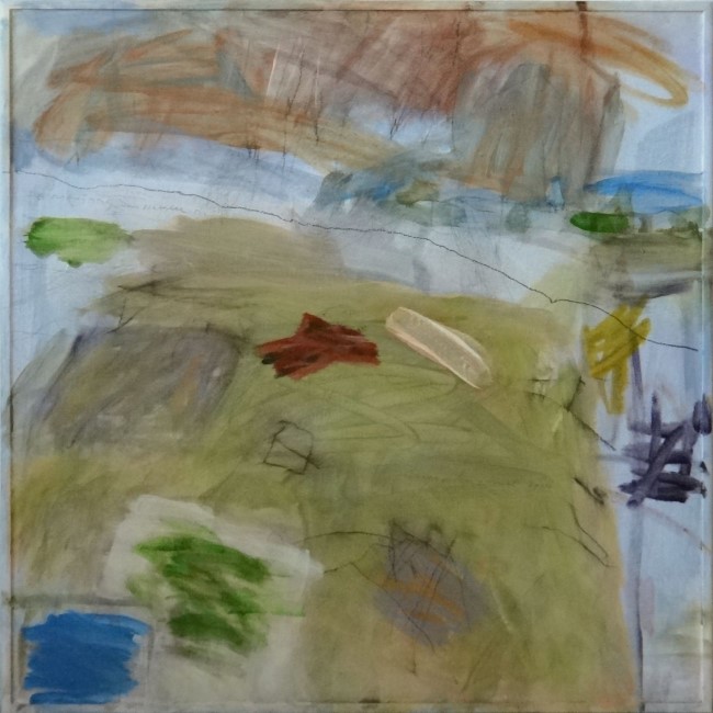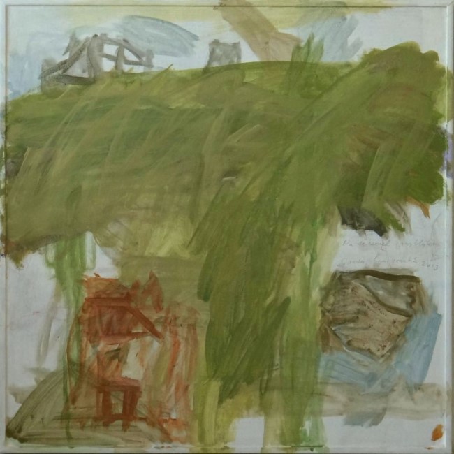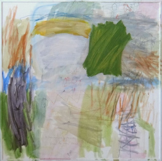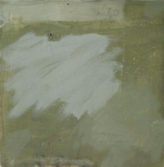 Nu de hemel gras blijkt, acryl en potlood op hout, 50x50 cm