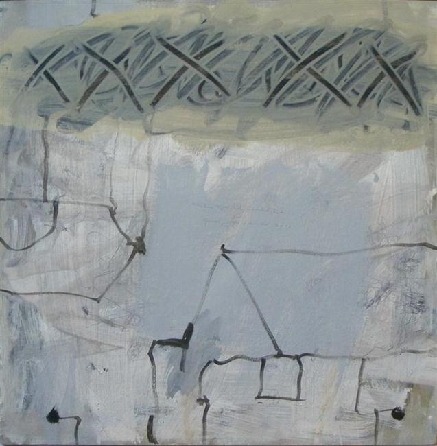 Verspreide bewoning, acryl en potlood op hout, 50x50 cm