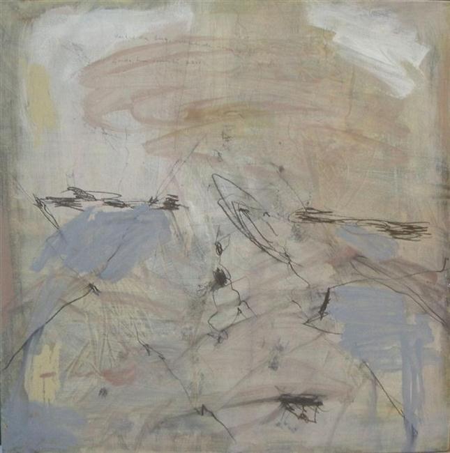 Mijn hemel ligt braak, acryl en potlood op hout 61x61cm