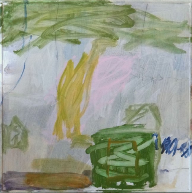 In de namiddag, acryl en potlood op hout, 50x50 cm