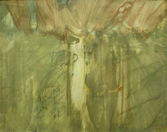 Gevolgen van de wind, gouache en potlood op papier 39x31cm