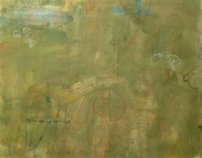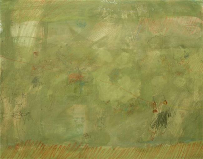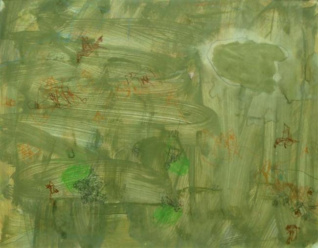 Schrale grond, gouache en potlood op papier 39x31cm