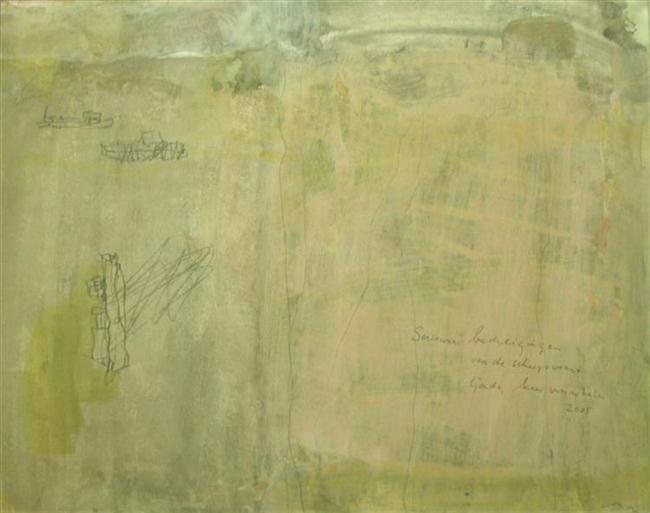 Boeddhistische proeven in veenrijk gebied, gouache en potlood op papier 39x31cm
