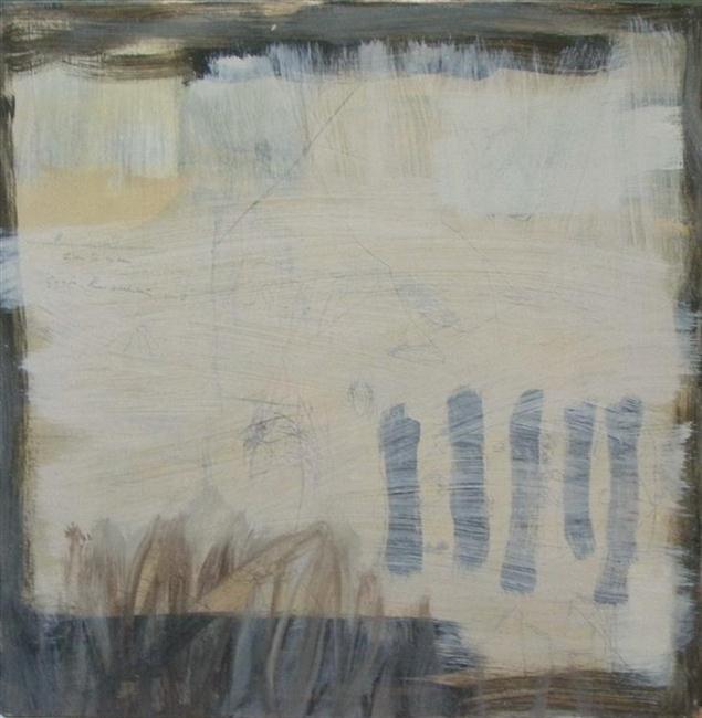 Opgravingen, lakverf en potlood op hout 61x61cm